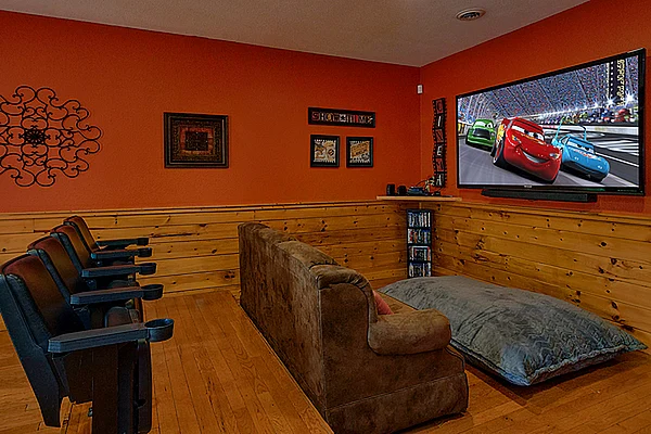 While there’s plenty to do outside your cabin, your luxury 2 bedroom cabin with theater room offers plenty of features for entertainment as well. The theater room features an 80-inch Smart TV, authentic theater seats, and the latest surround sound technology making for a perfect movie night experience!