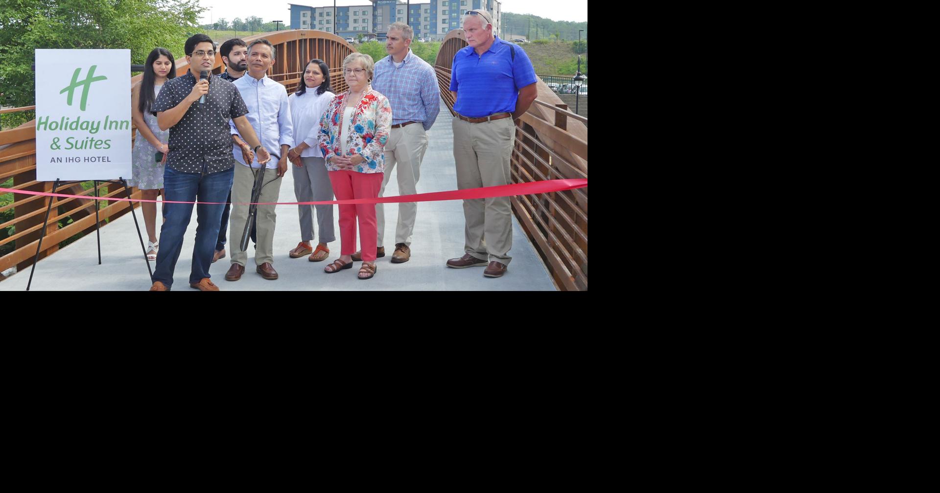 PIGEON FORGE — The Holiday Inn & Suites celebrated its second anniversary Thursday by officially opening a pedestrian bridge on its property that connects walkers from the Parkway over the Little Pigeon River to reach the city’s greenway and the LeConte Events Center.