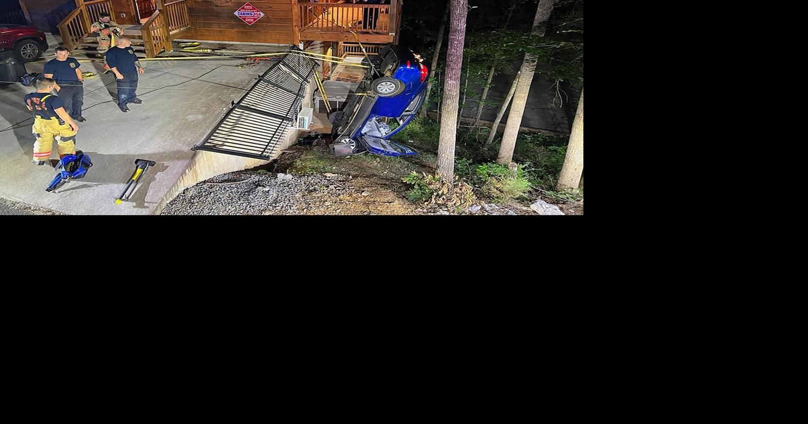 PIGEON FORGE — Firefighters pulled off a complex rescue operation Sunday morning after a driver went off the driveway of a cabin and onto a steep embankment, leaving her car precariously balanced on its front while she and her dog were stuck inside.