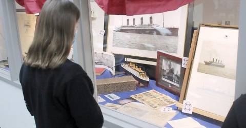 Pope John High School students taking social studies classes this year learned about the Titanic’s story through Love’s collection. They also participated in the honors symposium “Titanic: A Return to the Depths” under the direction of social studies teacher Jacquelyn Burt, who is also a member of the Titanic Historical Society. Twenty five students explored primary sources and Woods Hole Oceanographic Institute findings while also reporting on Boards of Inquiry theories and passenger survival stories.