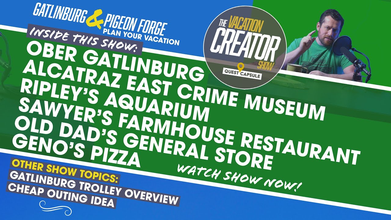 Let us help with your trip planning for your vacation to Gatlinburg and Pigeon Forge. We’re giving the inside scoop on fun things to do like, Ober Gatlinburg, Alcatraz East Crime Museum, and Ripley’s Aquarium of the Smokies. We discuss these 3 awesome restaurants, Sawyer’s Farmhouse Restaurant, Old Dad’s General Store, and Geno’s Pizza.